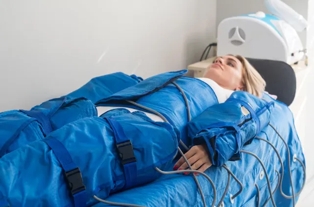 Lymphatic Drainage- The compression process encourages the drainage of excess fluid from tissues, promoting detoxification, reducing swelling, and improving overall circulation.